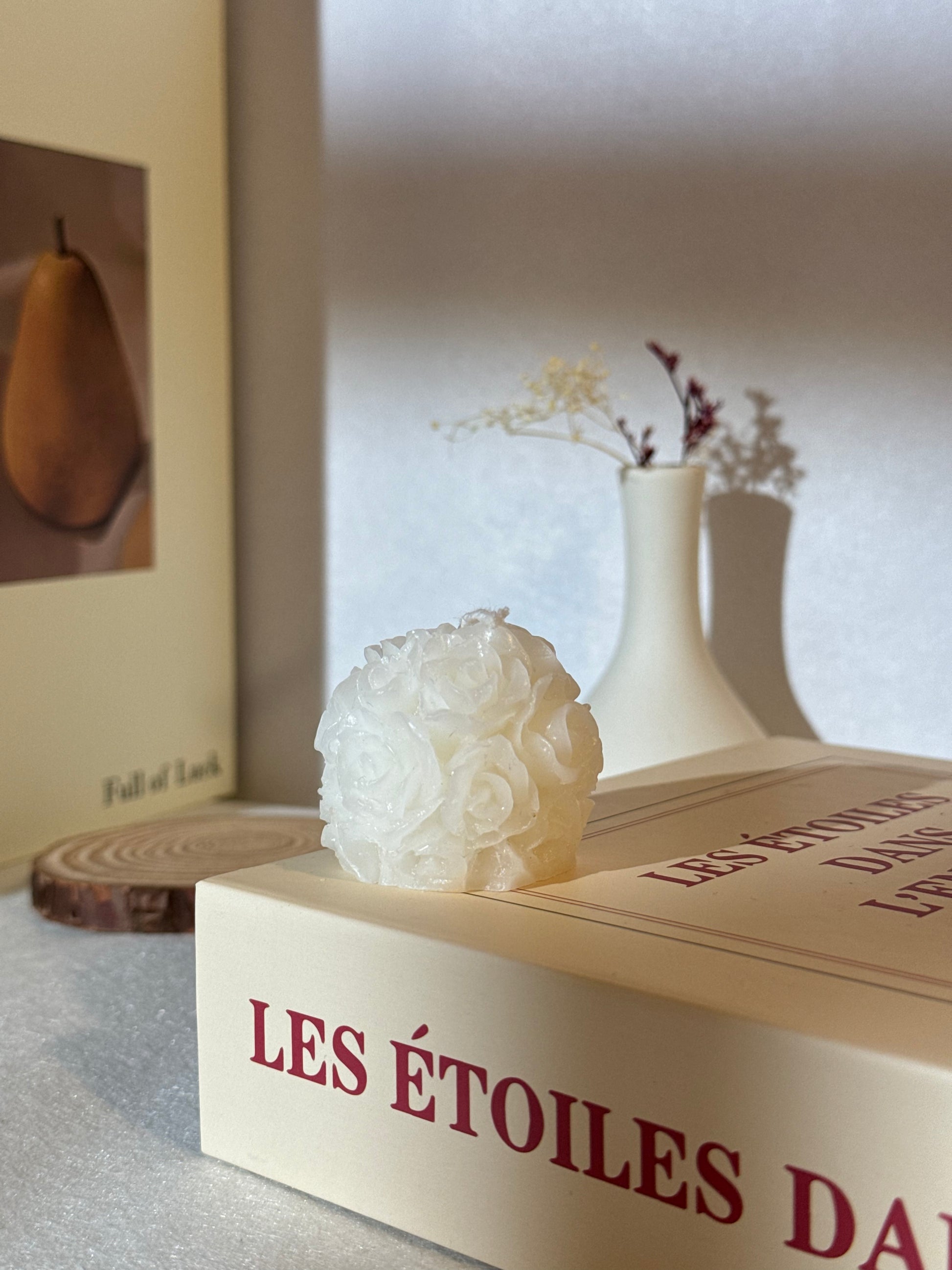 Eira Roseraie distills the charm of a rose bouquet into a palm-sized keepsake. Whether in soft white or romantic pink, each bloom is carefully hand-poured with natural beeswax and shaped into a floral cluster that feels both delicate and timeless.