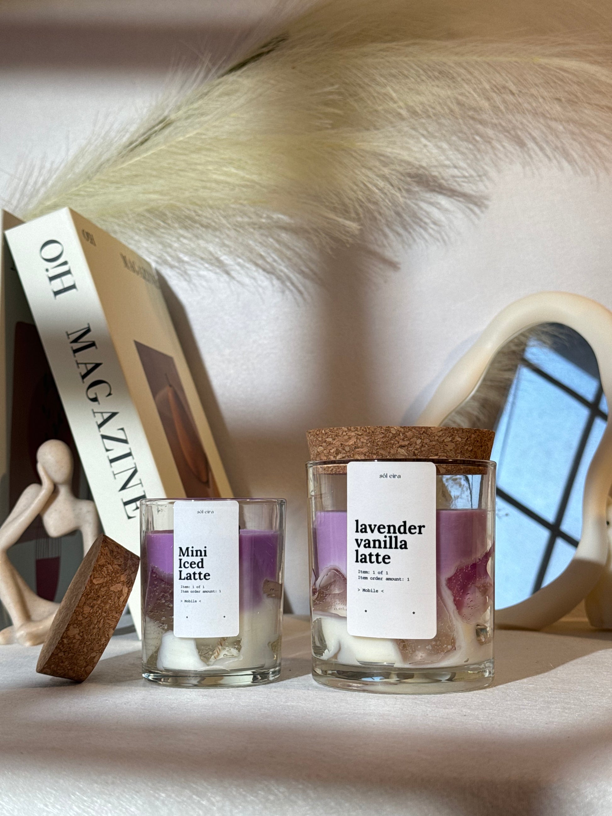 For the days when you need a moment of quiet — and then another one after that. This set includes one full-size and one mini Lavender Vanilla Latte candle: both designed to look like your favorite iced drink, both made to slow the world down.
